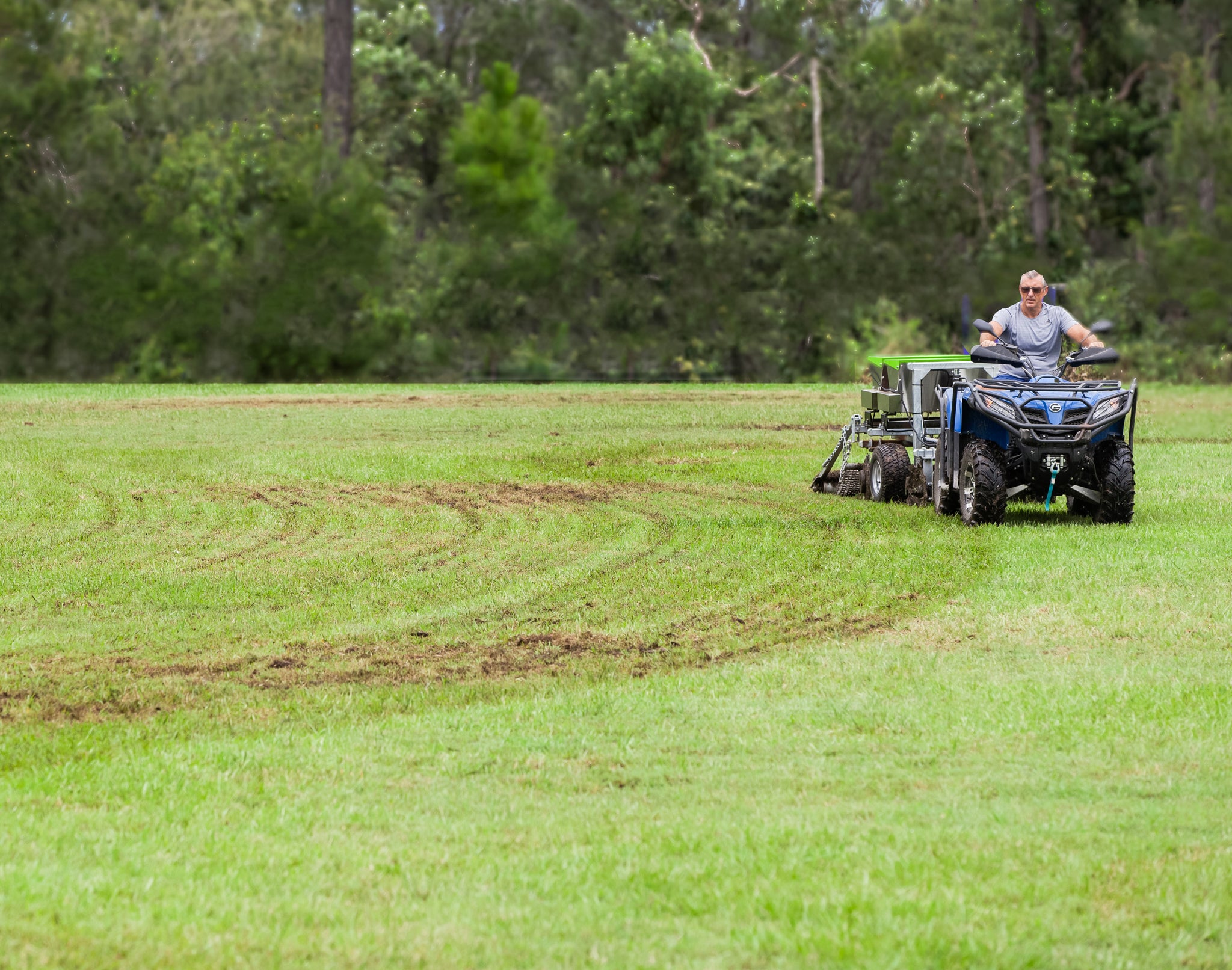 It was taking up to three weeks for the grass to come back. The seeder cut that time in half at least. -